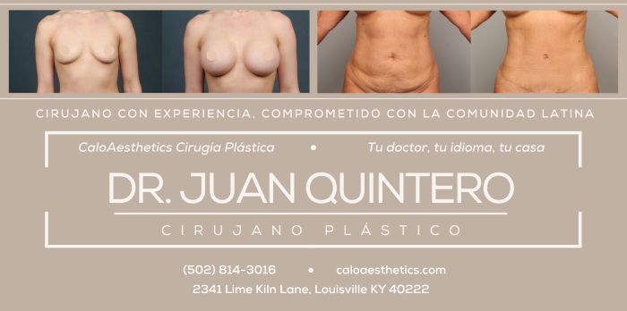 En Louisville, el Dr. Juan Quintero es conocido por su talento, su honestidad y la forma en que cuida a sus pacientes. Como el único cirujano plástico que habla español en la ciudad, quiere que la comunidad latina sepa que puede recibir una cirugía segura y de nivel mundial aquí mismo, sin tener que viajar a Miami o a Sudamérica.