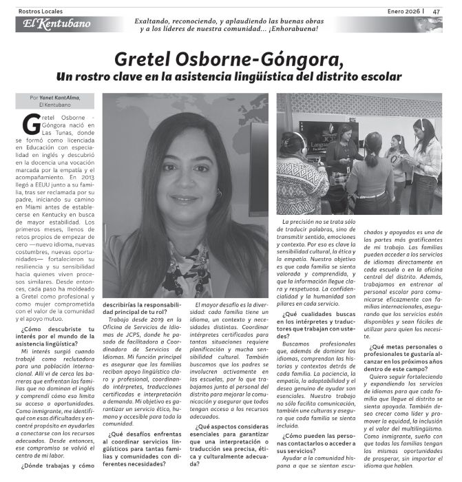 Rostros locales: Gretel Osborne-Góngora, un rostro clave en la asistencia lingüística del distrito escolar
