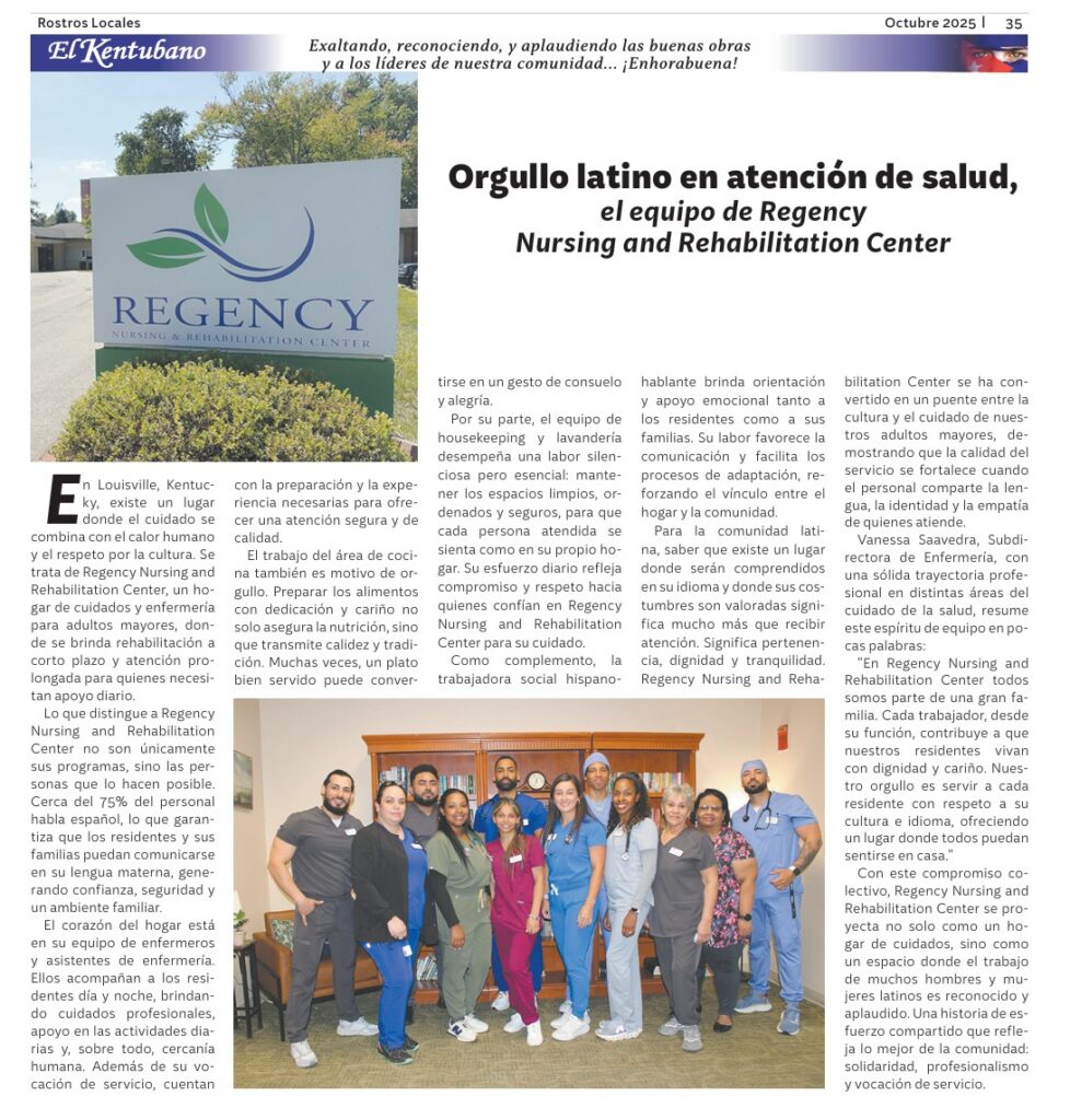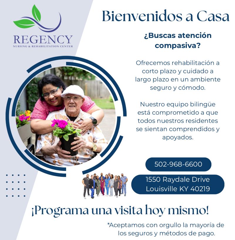 En Louisville, Kentucky, existe un lugar donde el cuidado se combina con el calor humano y el respeto por la cultura. Se trata de Regency Nursing and Rehabilitation Center, un hogar de cuidados y enfermería para adultos mayores, donde se brinda rehabilitación a corto plazo y atención prolongada para quienes necesitan apoyo diario.