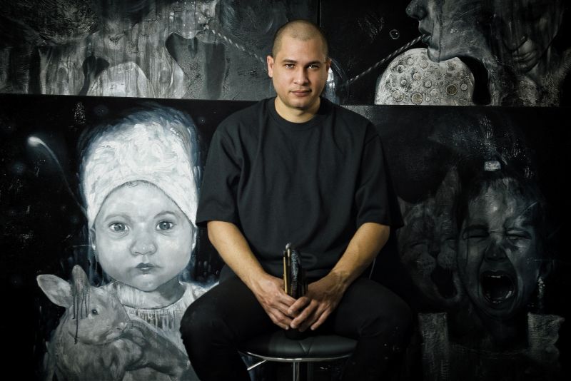 Formado en Artes Plásticas y estudiante por tres años de la Universidad de las Artes en Cuba (ISA), Roberto Carlos inició su carrera explorando óleo y acrílico en su vertiente más clásica. Sin embargo, pronto descubrió que su verdadero lenguaje estaba en la experimentación con texturas y en la búsqueda de un diálogo diferente con el lienzo. Fue así como comenzó a incorporar técnicas poco convencionales, a explorar contrastes matéricos y a desafiar los límites de la pintura tradicional. De esa exploración nació un arte metamorfo, cargado de erotismo, oscuridad y preguntas existenciales, que no busca agradar, sino provocar. Su obra invita a la reflexión, al estremecimiento y a la confrontación con lo más íntimo y humano.