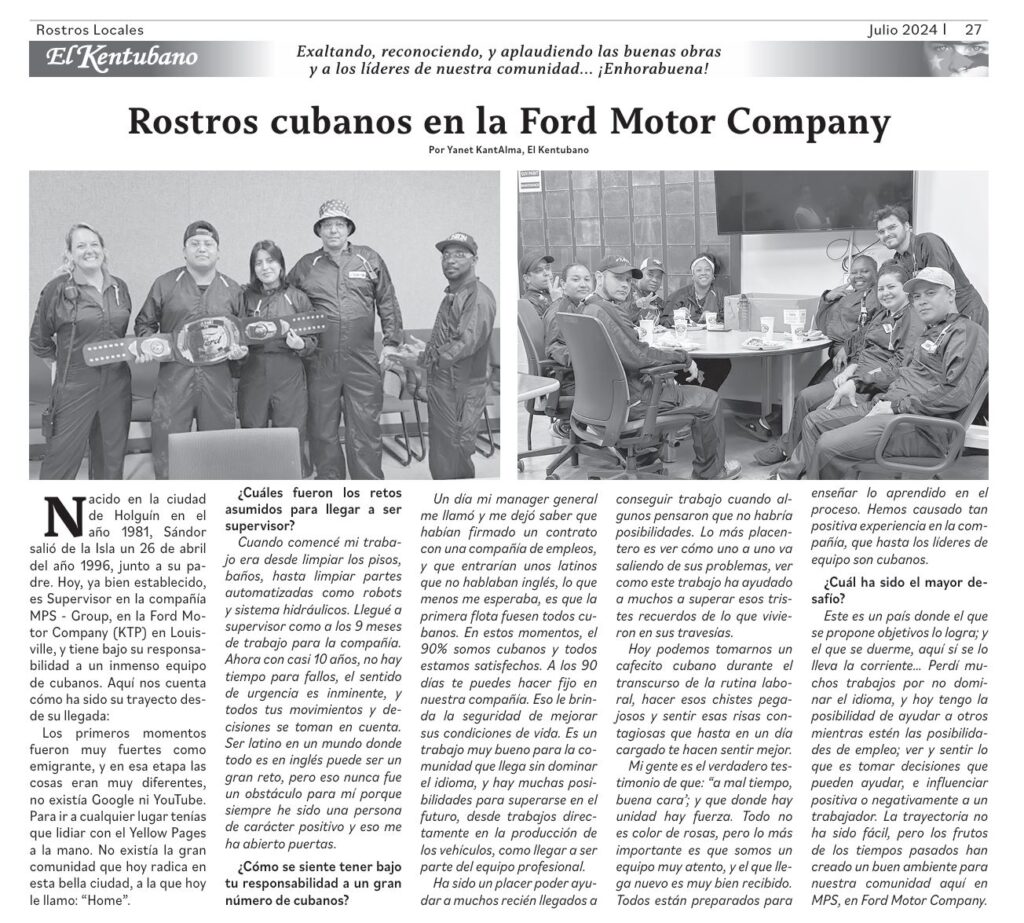 Nacido en la ciudad de Holguín en el año 1981, Sandor Zaldivar salió de la Isla un 26 de abril del año 1996, junto a su padre. Hoy, ya bien establecido, es Supervisor en la compañía MPS – Group, en la Ford Motor Company (KTP) en Louisville, y tiene bajo su responsabilidad a un inmenso equipo de cubanos. Aquí nos cuenta cómo ha sido su trayecto desde su llegada.
