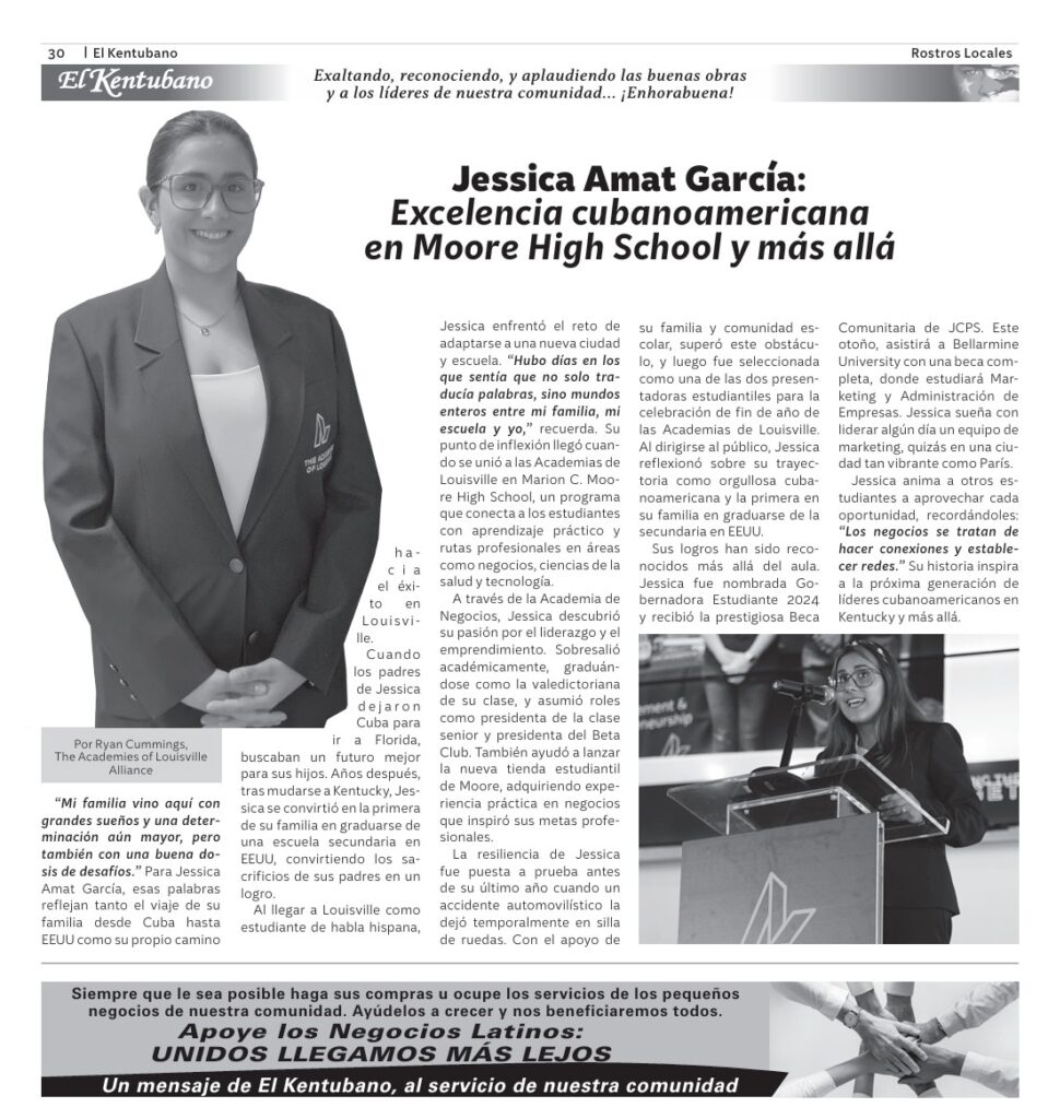 Jessica anima a otros estudiantes a aprovechar cada oportunidad, recordándoles: “Los negocios se tratan de hacer conexiones y establecer redes.” Su historia inspira a la próxima generación de líderes cubanoamericanos en Kentucky y más allá.