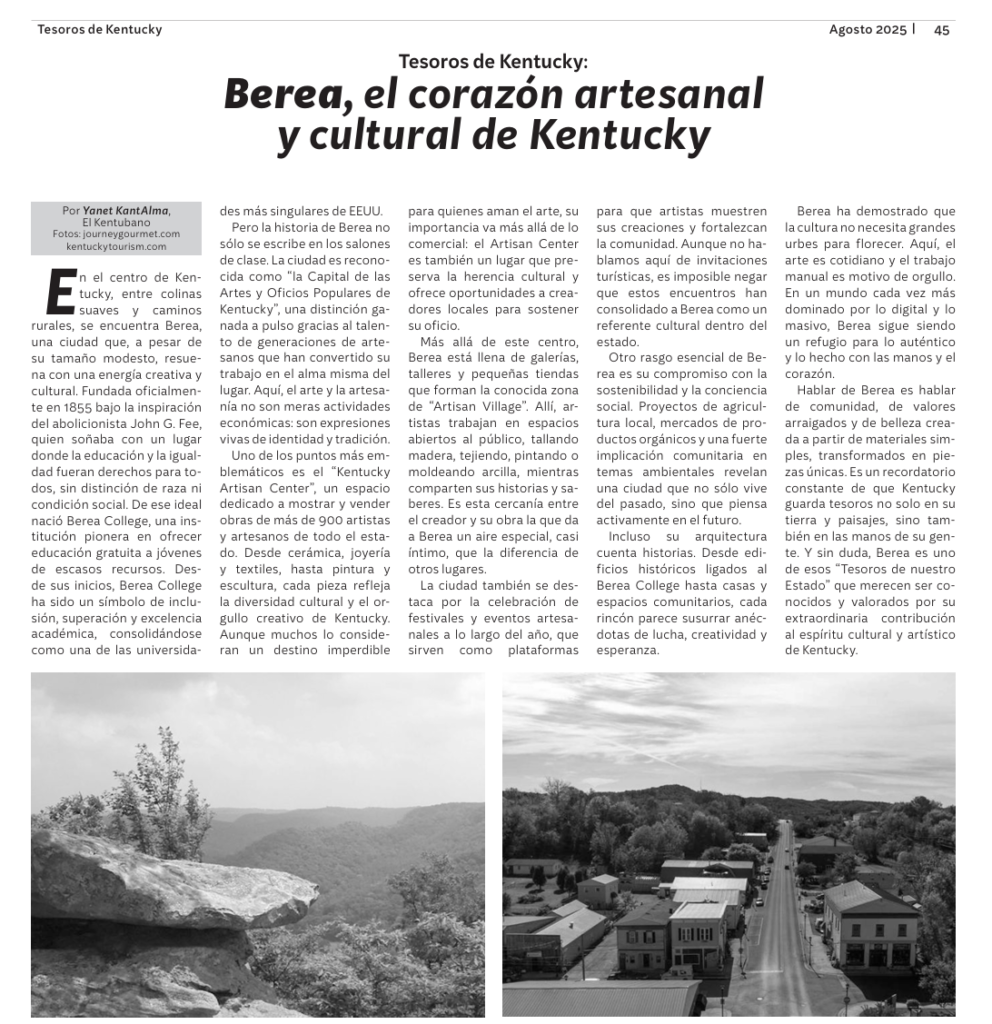 Hablar de Berea es hablar de comunidad, de valores arraigados y de belleza creada a partir de materiales simples, transformados en piezas únicas. Es un recordatorio constante de que Kentucky guarda tesoros no solo en su tierra y paisajes, sino también en las manos de su gente. Y sin duda, Berea es uno de esos “Tesoros de nuestro Estado” que merecen ser conocidos y valorados por su extraordinaria contribución al espíritu cultural y artístico de Kentucky.